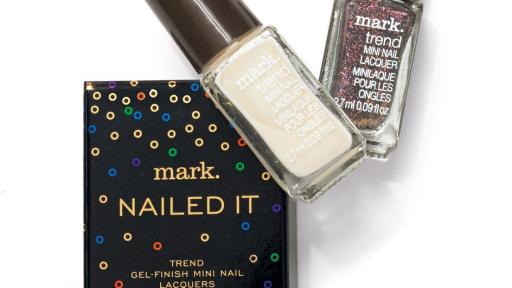 - mark. Nailed It Gel Trend gel Finish Mini Nail Laquers ($7.00): A perfect addition to any stocking, high-impact polish delivers Gel-like shine in two limited-edition shades: Eggnog, a deliciously creamy white, and Sugar Plum, a dreamy shimmering marsala.