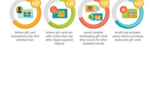 - Gift cards believed to be safest for online shopping: 64 percent of millennials believe that gift cards are safer to use online than any other digital payment method. Sixty-six percent believe gift cards limit identity fraud.