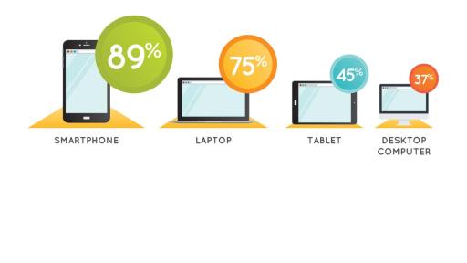 - Smartphones are a primary means to connect to the Internet: Smartphones are a dominant method of connection to the web for millennials, with 89 percent using them to connect to the Internet, versus 75 percent using laptops, 45 percent using tablets and 37 percent using desktop computers.