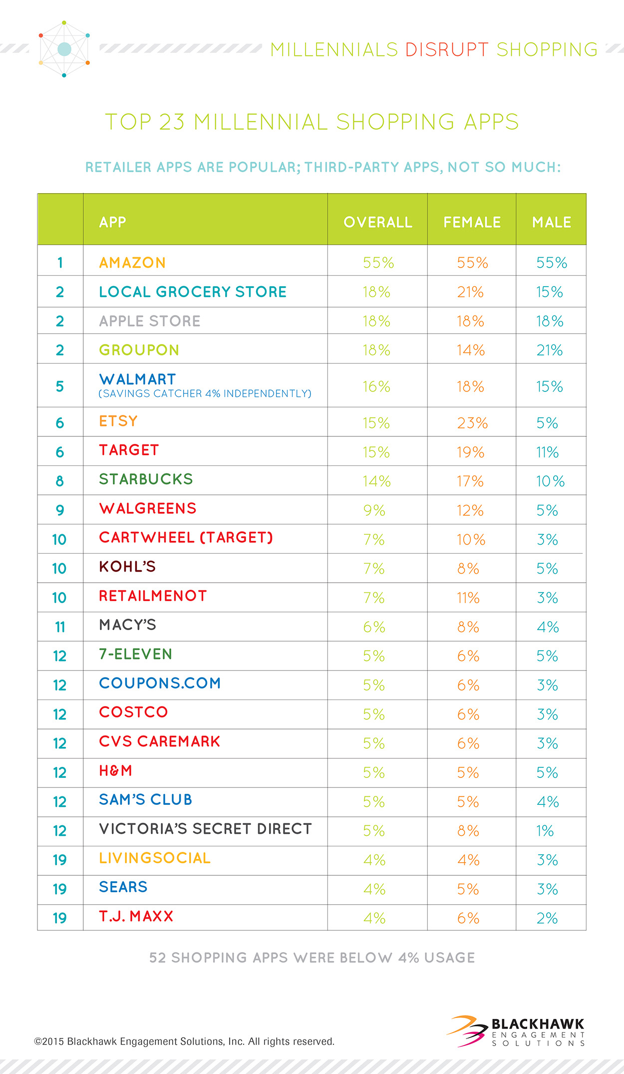 An infographic exploring the findings of Blackhawk Engagement Solutions’ “Millennials Disrupt Shopping” research can be downloaded here.
