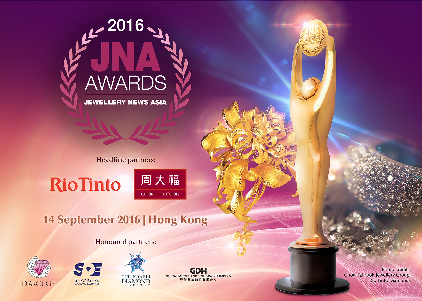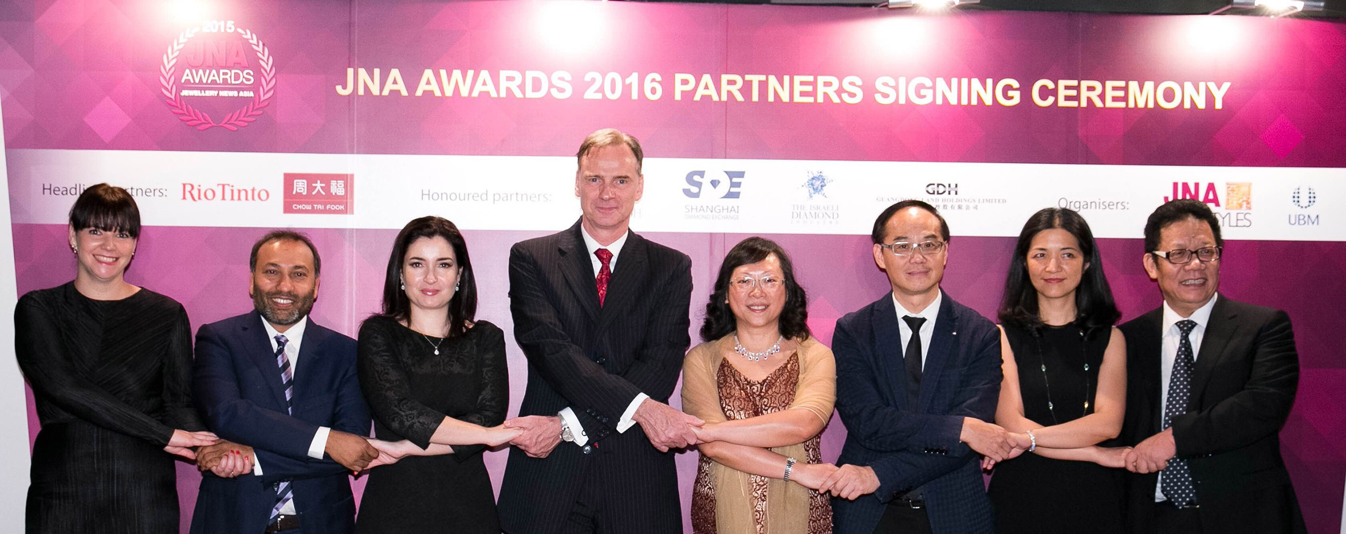 The JNA Awards 2016 has Rio Tinto Diamonds and Chow Tai Fook as its Headline Partners, with Diarough Group, Israel Diamond Institute Group of Companies, Shanghai Diamond Exchange, and Guangdong Land Holdings Limited serving as Honoured Partners.