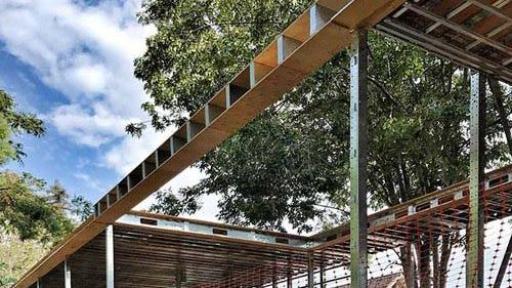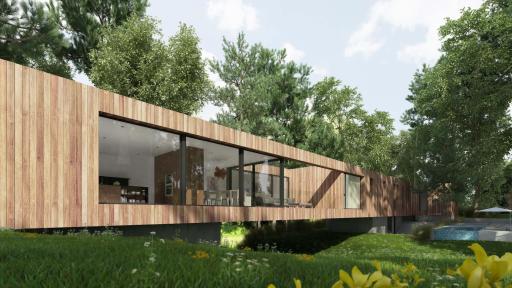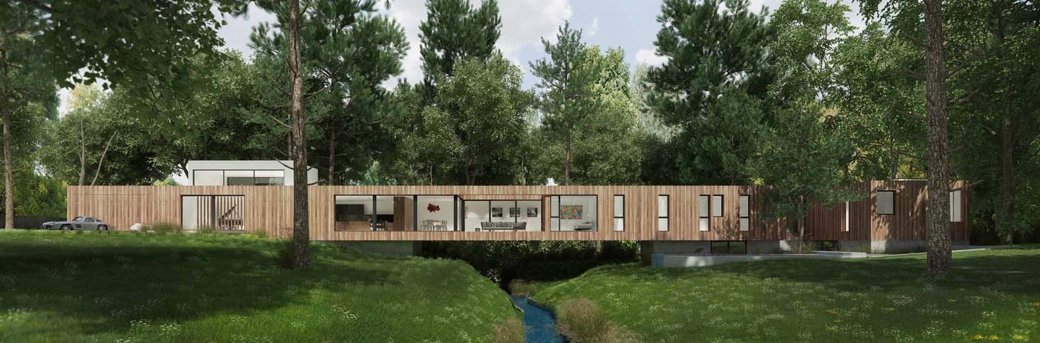Bridge House, located in historic Hancock Park, Los Angeles, stretches 200 feet across the grounds and straddles a brook in an architectural feat that gives the project its name. When complete in 2018, the 4,500-square-foot home will serve as a demonstration of innovative and clean building processes. The green home will educate builders and the public about futuristic, custom home building practices.