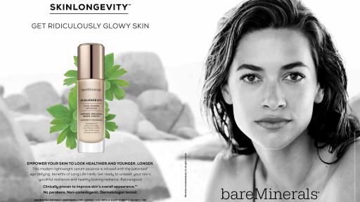 bareMinerals® unleashes ridiculously glowy skin this January with the launch of their new SKINSORIALS™ Skincare line and hero product SkinLongevity™ Vital Power Infusion—a first of its kind lightweight serum essence designed to reawaken and help maintain skin’s most vibrant look of health.