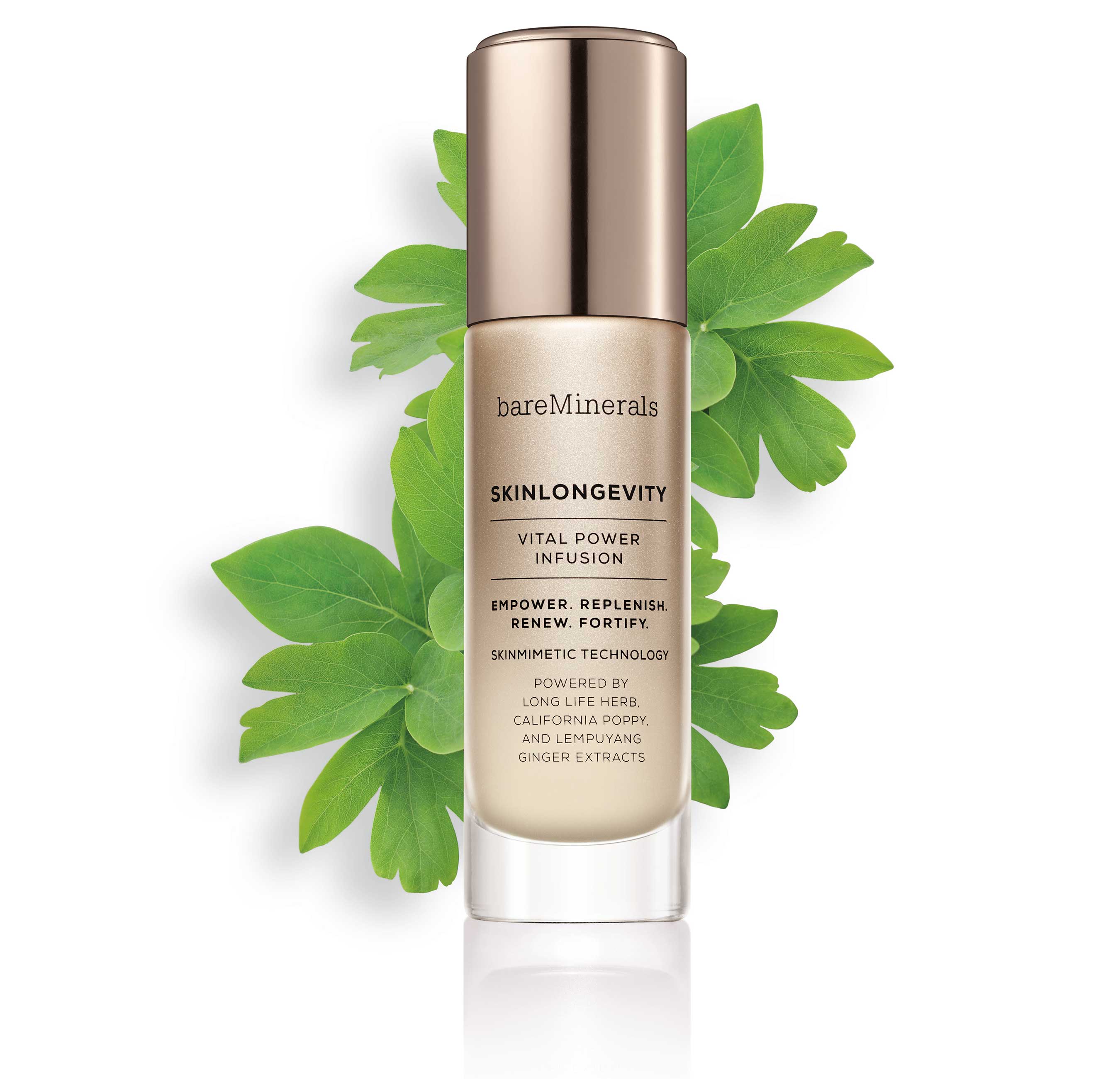 To tackle the lofty premise of longevity, bareMinerals turned to a location where women thrive and live longer than most any other place in the world.** Okinawa—known as “the island of long life”—is where a plant was discovered growing in the mineral- and vitamin-rich coastal soil that local residents boast as an essential part of their health and enduring wellness: Long Life Herb. This resilient herb grows in the island’s harsh climate, showing its tenacious ability to thrive. A time-tested and symbolic ingredient, Long Life Herb Extract is the secret behind bareMinerals’ new hero product, SkinLongevity Vital Power Infusion.