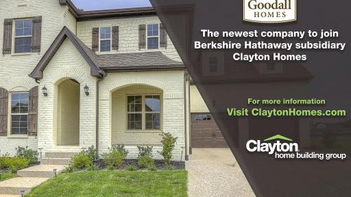 “I started building homes 33 years ago. We have been blessed with so many successful opportunities,” Goodall Homes President Bob Goodall, Jr., said. “This acquisition will help our employees, trades, suppliers and our families continue on this path of growth for years to come. Goodall Homes has developed many great leaders and this will provide many possibilities for our team members. We are honored to be on the Clayton team and to contribute to the continued success of Berkshire Hathaway.”