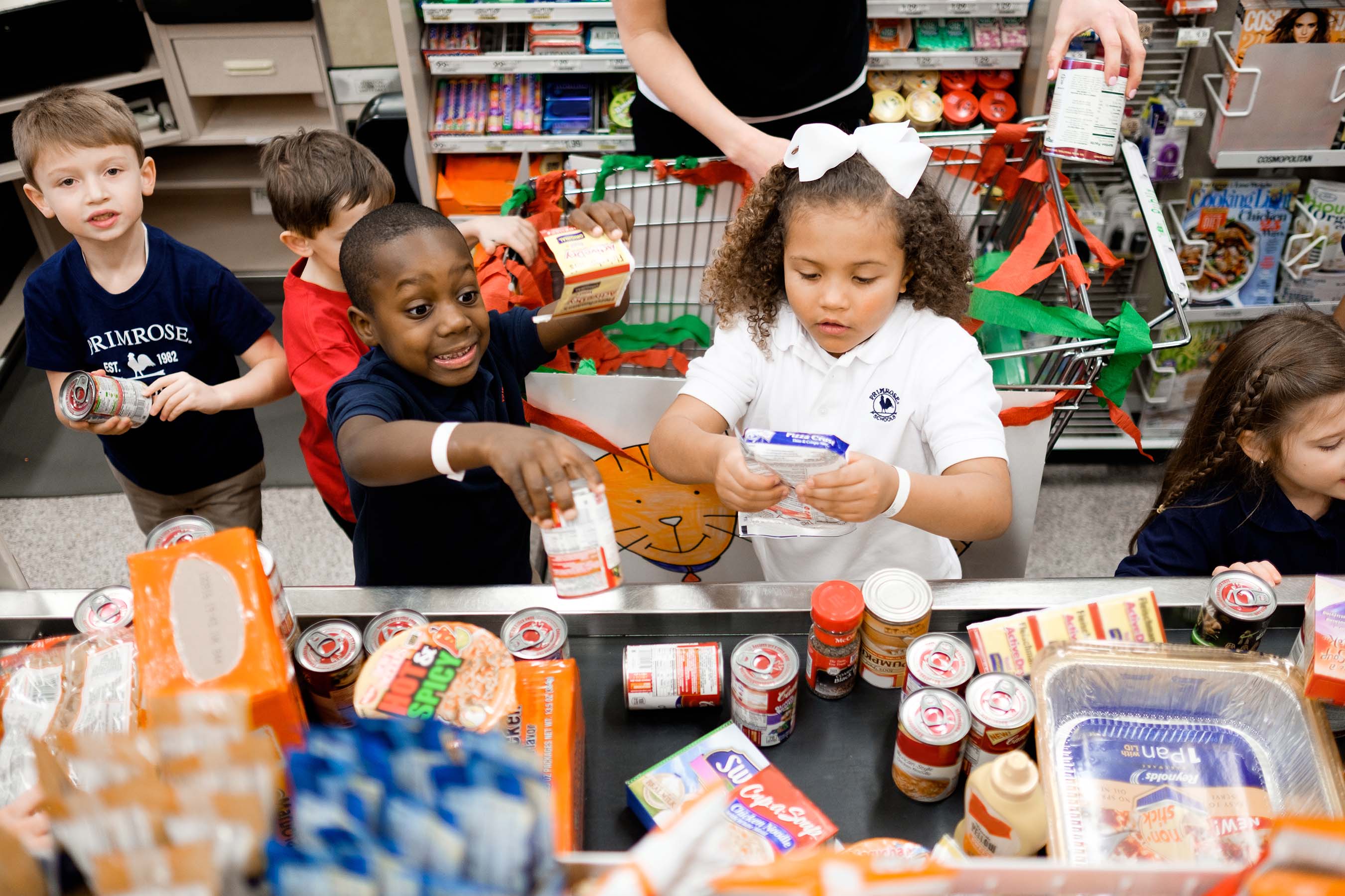 This month, thousands of pre-K and kindergarten children at more than 325 Primrose schools across the country are taking part in the annual Caring and Giving Food Drive. During the activity, children are asked to earn money through chores at home. They bring their donations to the classroom where they develop a budget and shopping list for healthy food items. Teachers model good citizenship and emphasize the importance of compassion through songs and books about sharing and giving to others. Then the children take field trips to grocery stores to shop for the food items, which are donated to local charities and distributed to those in need. By taking part in the act of giving, from earning the money for canned goods to planning healthy foods to purchase and shopping for the items, children learn the joy of giving firsthand.
