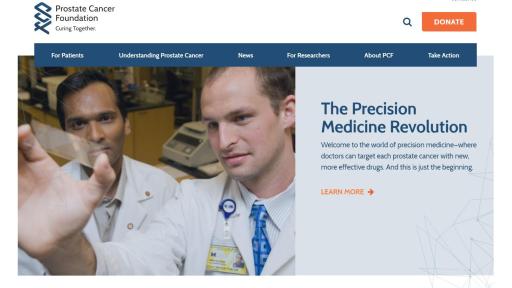 PCF’s new helix-inspired logo signals the Foundation’s emphasis on personalized, genomics-driven precision medicine. A fully redesigned website features a sleek, simplified interface with enhanced capabilities and information to help men on their critical day of need.