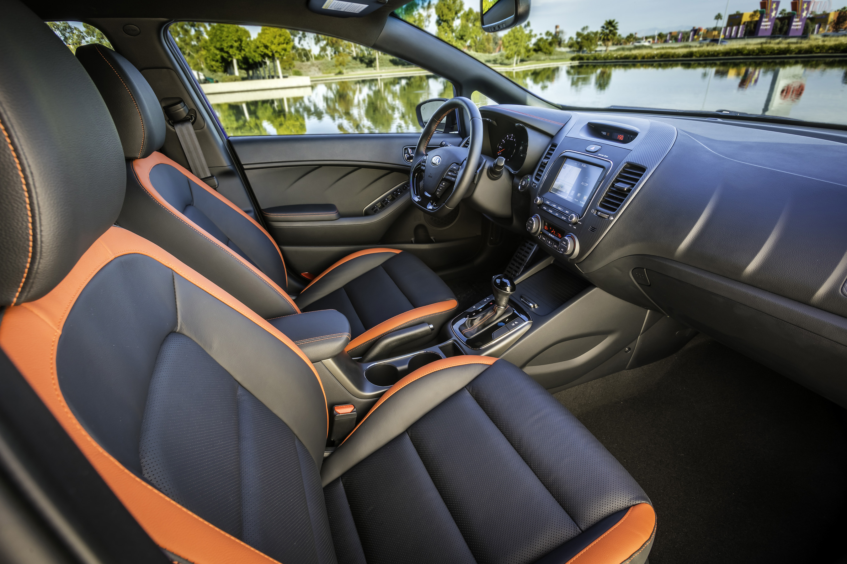 Three trim levels remain - LX, EX, and SX – and each one brings something new to the table for 2017. The entry-level LX is handsomely equipped with features such as projector beam headlights and remote keyless entry with trunk opener and is now available with Blind Spot Detection3 with Lane Change Assist and Rear-Cross Traffic Alert, as these advanced driver-assistance systems are optional across the entire range. The EX sees the most changes as previous options – including LED taillights, leather seats, heated front seats, push-button start with Smart Key, and perimeter approach lighting with front-door pocket lighting – are now standard along with UVO eServices4. Kia’s UVO infotainment system offers Android Auto and Apple CarPlay™ (late availability) compatibility, and is displayed on a 7-inch color touchscreen4. Both platforms allow drivers to stay connected by replicating key smartphone apps and functionality on the touchscreen, enabling them to send text messages, access music, or look up driving directions while behind the wheel. The sporty SX trim comes with all that and more, including 18-inch alloy wheels, unique front and rear fascias with red accents, and dual exhaust tip finishers. Also new for the SX is an Orange Color Pack, which further signifies the SX’s sporty nature with orange leather seat inserts and contrasting stitching on the seats and shifter.