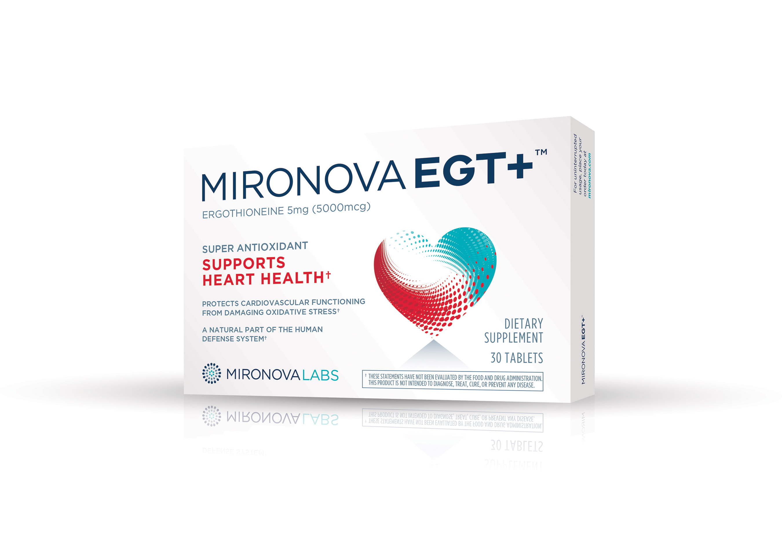 Mironova Labs, a leader in next-generation discoveries for health, vitality and beauty, announced today the launch of MironovaEGT+™, the breakthrough dietary supplement to support healthy cardiovascular functioning. MironovaEGT+ contains the highest available concentration of ergothioneine, a super antioxidant that supports heart health by preventing oxidative stress, often described as a “rusting” of the body.
