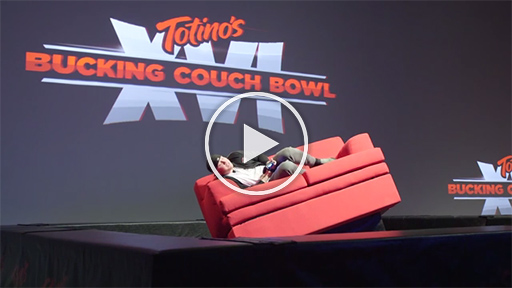 Totino’s Pizza Rolls™ and Twitch, the world’s leading social video platform and community for gamers, are teaming up to create the ultimate gaming showdown using a one-of-a-kind “Totino’s Bucking Couch.” On Sunday, Feb. 7, Twitch users will have the opportunity to spin, roll and buck some of the top names in gaming right off the couch they’re sitting on in the first ever “Totino's Bucking Couch Bowl.”