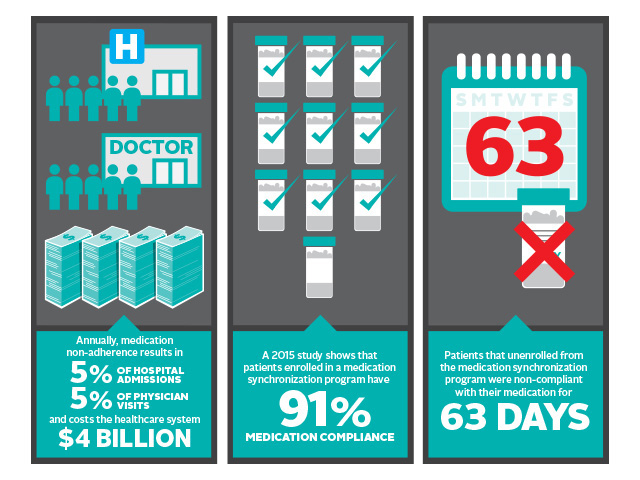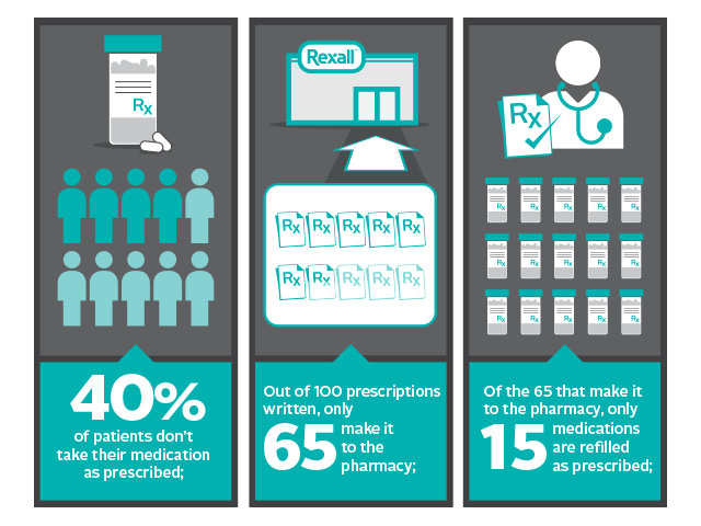 Through a partnership with Ateb Canada, the leading provider of pharmacy-based patient care solutions, Rexall pharmacies can implement a technology-driven medication synchronization program that enables pharmacists to effectively and proactively assist their patients to achieve healthier outcomes in an affordable manner. The adoption of Ateb’s medication synchronization program, Time My Meds, in other community pharmacies yields substantial improvement in patient adherence as demonstrated in a study by the National Community Pharmacists Association (NCPA), available at www.ncpanet.org/adherence.