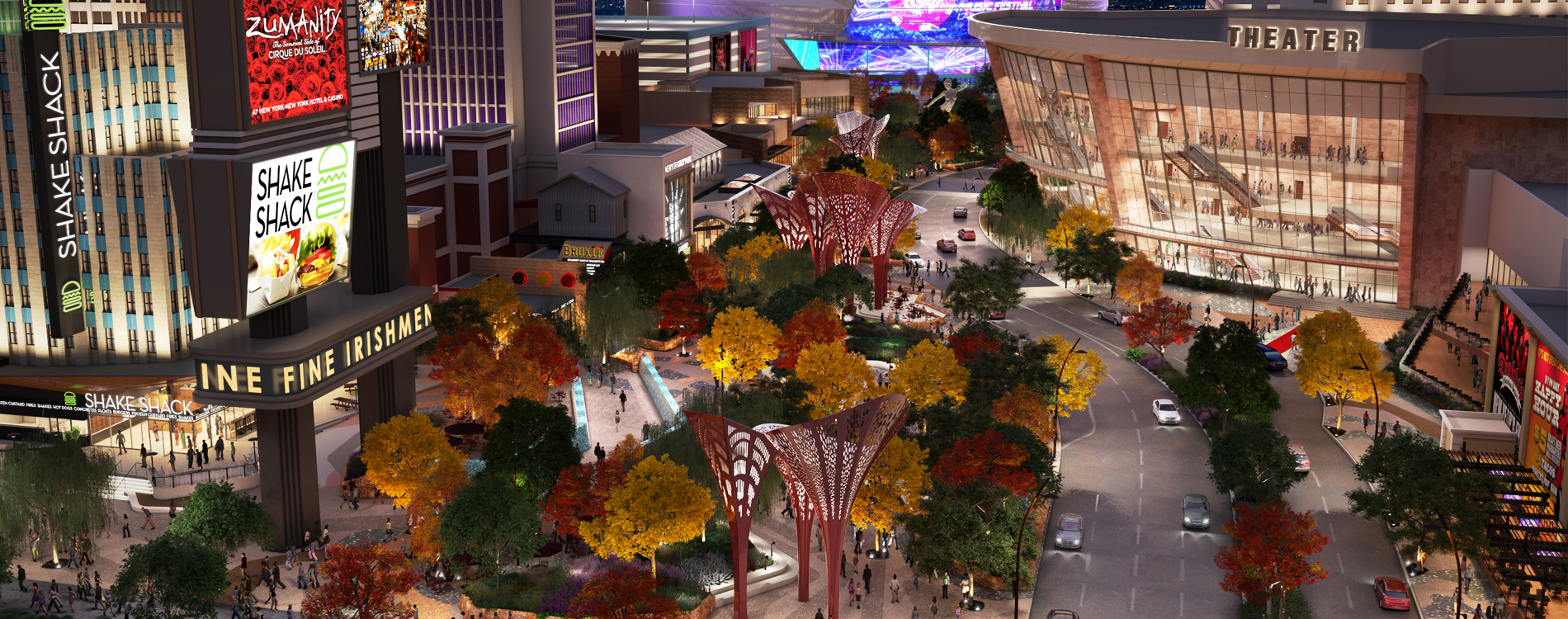 Casual restaurants and bars with outdoor seating will flank The Park, providing visitors the opportunity to indulge in delicious fare as they make their way through the space. Whether relaxing under the shade structures, taking photos in front of the spectacular water wall or meeting up with friends, The Park is an enticing getaway that provides a fun, exciting and relaxing cultural experience for all.