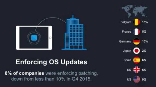 - Enforcing OS updates: 8% of companies were enforcing OS updates, which was comparable to Q4 2015.