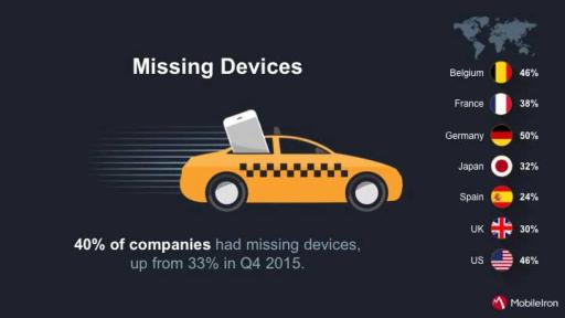 - Missing devices: 40% of companies had missing devices, up from 33% in Q4 2015.