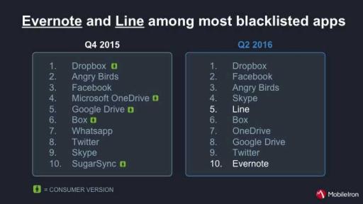 Evernote and Line among most blacklisted consumer apps
