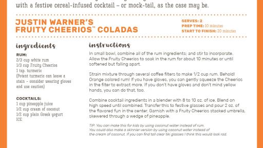 2. Did someone say cereal cocktail? Yep, thanks to Chef Justin Warner, there are even more ways to enjoy favorite cereals. This year, parents can celebrate #NationalCerealDay with a Fruity Cheerios Colada or mix up a mocktail for the kids.