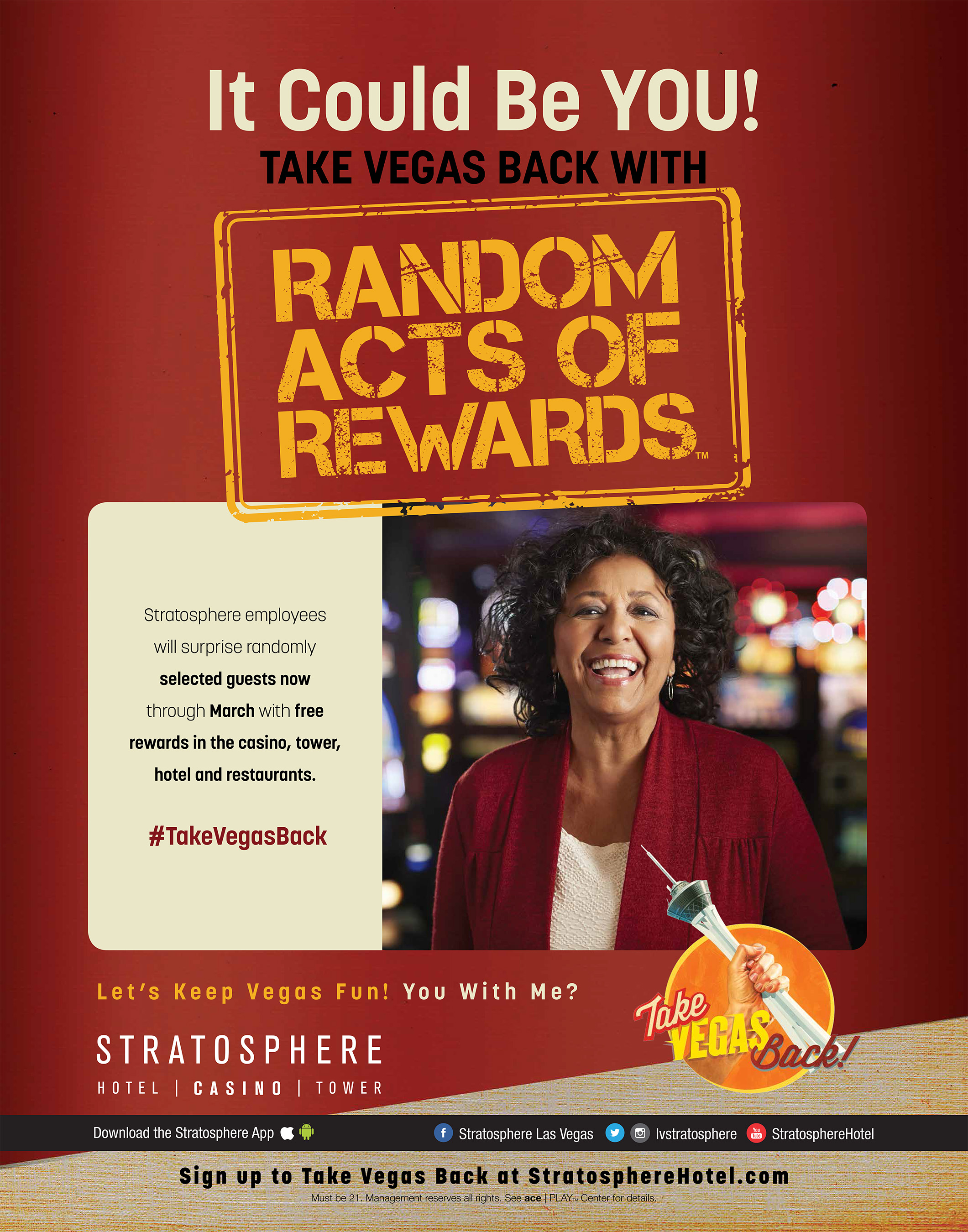 Stratosphere Casino, Hotel & Tower Wants You to “Take Vegas Back” and Receive Random Acts of Rewards™
