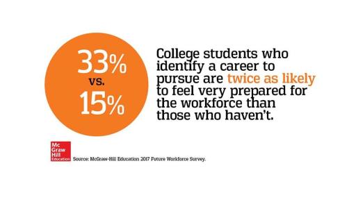 - Feelings of preparedness: Students who have identified a career to pursue are more than twice as likely to feel “very prepared” for a professional career (33 percent compared to 15 percent).