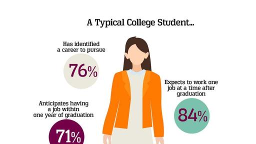 - 71 percent expect to have a job that aligns with their career goals within a year of graduating – in spite of the fact that most students rarely if ever use the career resources provided by their colleges.