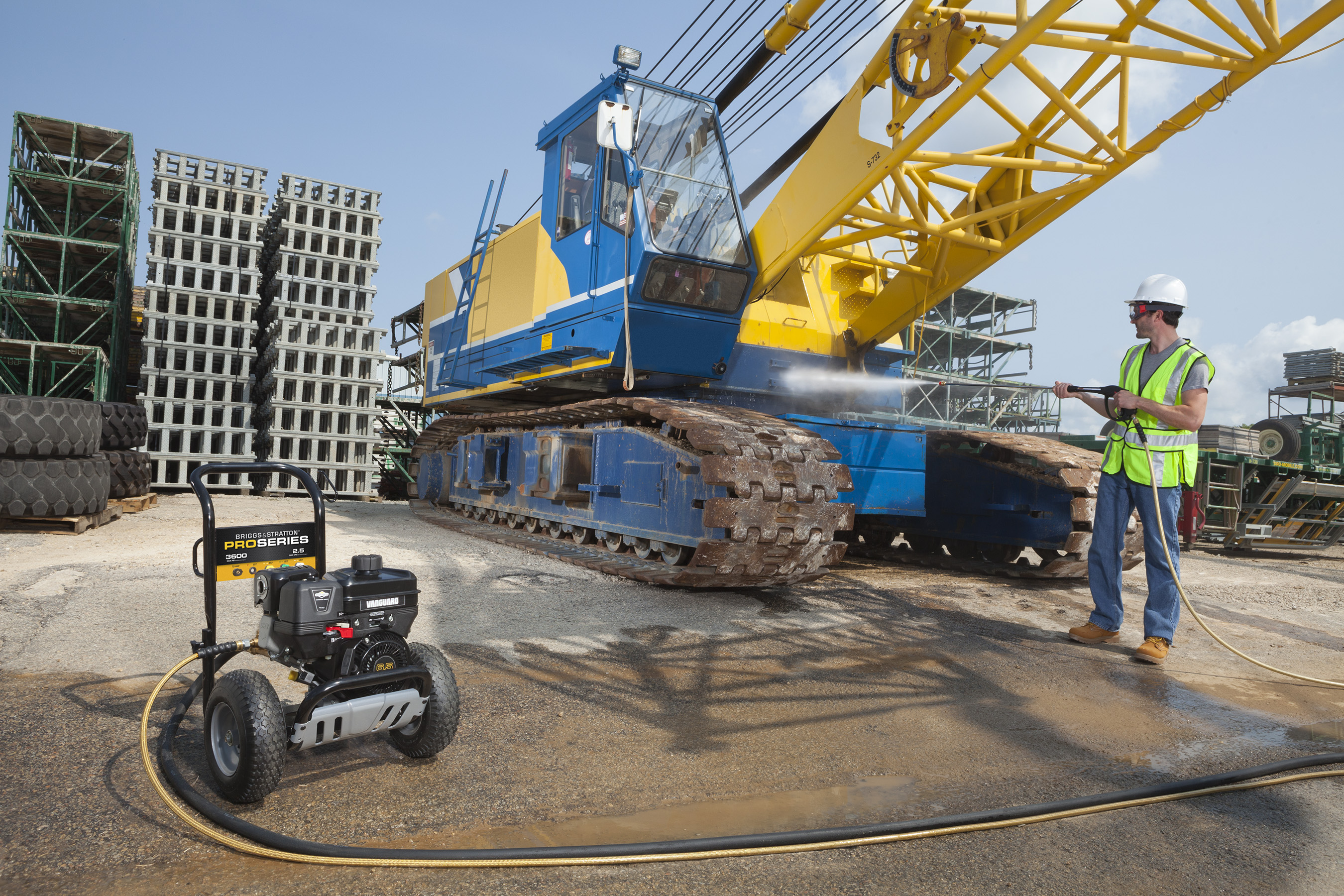 The new Briggs & Stratton 3600 Max PSI PRO Series heavy-duty pressure washer offers extended run times to go full workdays. The PRO Series pressure washer is powered by a Vanguard™ engine and built with contractor-specific features and components to give contractors enough power for any cleaning job, including prepping exterior siding for paint. The engine includes the TransportGuard™ System, a patented combined fuel and ignition shut-off, designed to eliminate the harmful effects of oil/fuel dilution during transportation. The pressure washer is backed by a 5-year limited commercial warranty**.