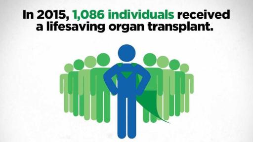 In 2015, 269 deceased and 279 living donors gave the gift of life to 1,086 transplant recipients. More than 2,100 tissue donors helped improve the lives of thousands through the gift of eyes, bone, skin, or heart valves.