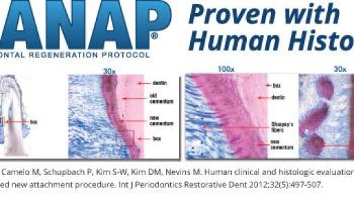 - True Regeneration™ of periodontal tissue lost to gum disease – new alveolar bone, new cementum, new periodontal ligament