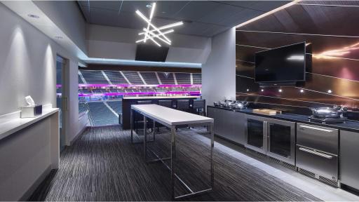 - Premium Suites: The exceptional collection of premium seating at T-Mobile Arena creates experiences across all levels. At one end of the arena, Opera Boxes and Terrace Tables provide a nightclub-inspired private viewing area for four-to-six guests. Forty-four Luxury Suites line the third level with individual kitchenettes, suite attendants, sofa-style banquettes and seating for up to 20 guests. Eight ultra-luxe 700-square-foot Event Level Suites with private porte cocheres for direct access are hidden away beneath the lower bowl right next to the action with satellite programming, a private bar, restroom and 16 premium lower-level seats. Two-way mirrors lining one wall provide an insider’s perspective to witness a sports team or performer making their way to the floor from the locker rooms or dressing room.