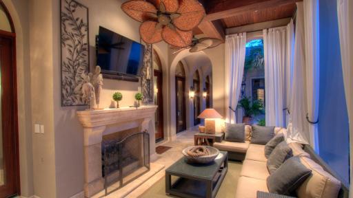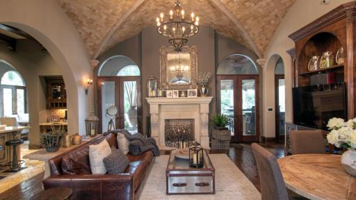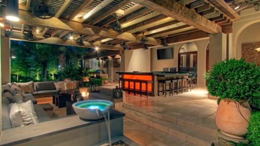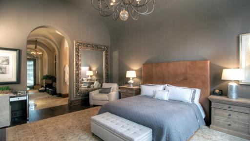The residence is opulent at every turn, perfect for the discerning buyer who may want to host large gatherings or enjoy their own private retreat. Three kitchens – the main chef’s kitchen, a catering kitchen, and an outdoor summer kitchen – make preparing culinary delights for any size gathering effortless; while the formal dining room, with floor-to-ceiling windows and an adjacent onyx lighted bar, is the perfect place for cocktails and conversation. For more private living, Regency Woods offers a stunning master suite, complete with a masterfully-curved ceiling and serene views of the courtyard. A series of three groin ceilings reveal a jetted spa tub, oversized walk-in shower, and his and her closets in the master en-suite.