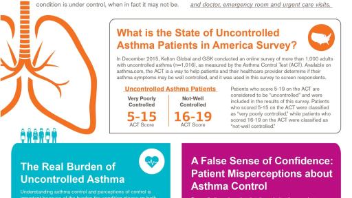 - One in five (20%) uncontrolled asthma patients needed to visit an emergency room or urgent care facility due to their condition in the past 12 months, which could present an opportunity to better educate uncontrolled asthma patients on disease management and treatment regimens.