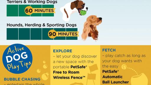 Dog owners are encouraged to play with their dogs outside to promote the development of healthier habits and lifestyles. Check out the PetSafe® guide for how much exercise dogs need and some creative dog play ideas. Physical activity has a number of benefits for canines that include reducing problem behaviors, maintaining physical fitness, improving overall health and helping with socialization.