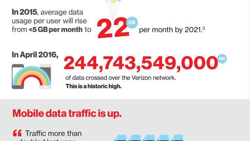 The new My Verizon app lets you access more data and new capabilities on the new Verizon Plan, designed to reflect the significant growth in individual data use. In April, 2013, an average Verizon smartphone customer used about 1 GB of data per month. By April 2016, the average increased to 2.7 GB per month.