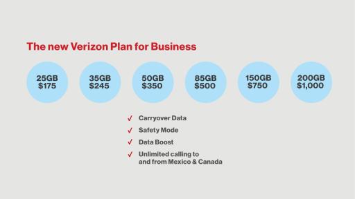The new Verizon Plan is also available in new sizes for small businesses with 11 to 25 lines and comes with the same great benefits of the consumer XL and larger new Verizon Plans. Monthly charges for small businesses are just $15 per month for each phone or smartphone on the new Verizon Plan.