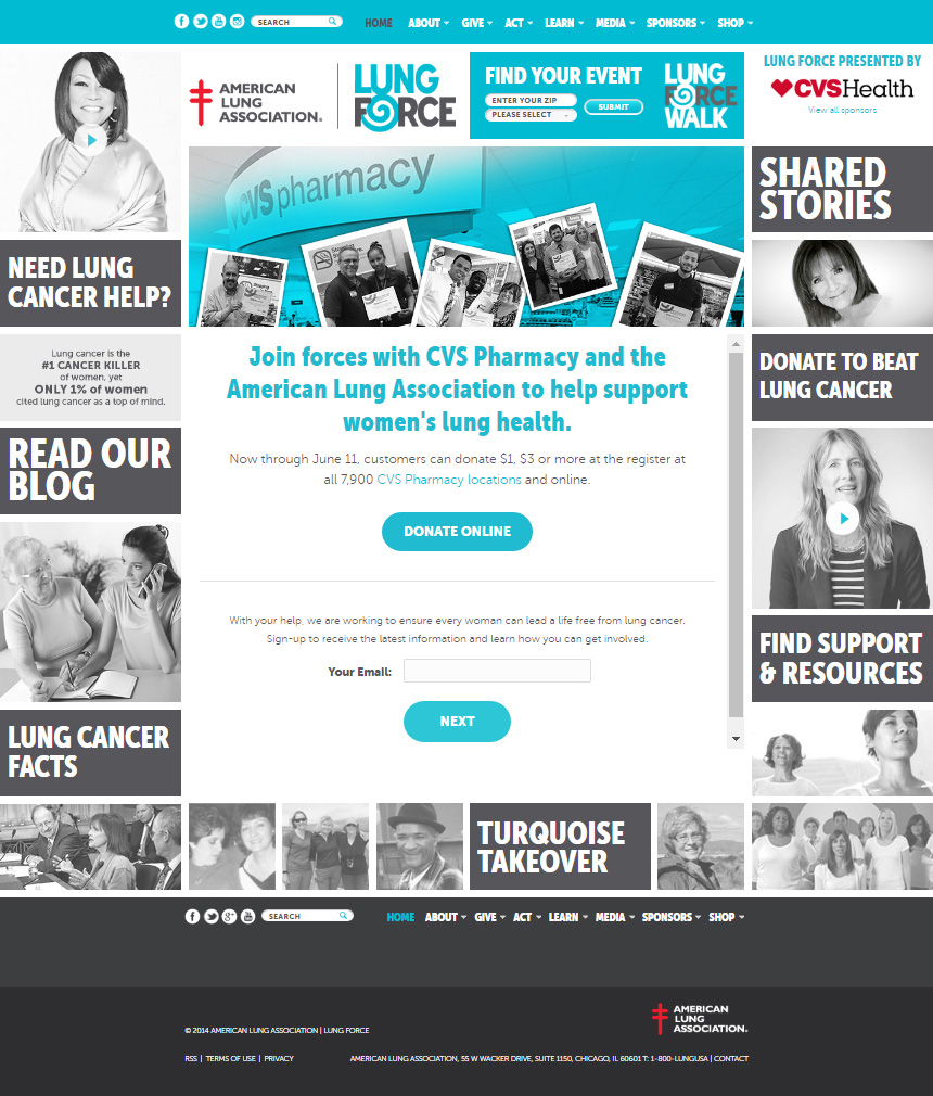 PR Newswire, WOONSOCKET, R.I., May 16, 2016 –CVS Health, the nation’s largest pharmacy innovation company, today launched an in-store fundraising campaign at CVS Pharmacy locations nationwide to benefit the American Lung Association’s LUNG FORCE initiative which aims to make lung cancer, the leading cancer killer of women in the United States, a public health priority.