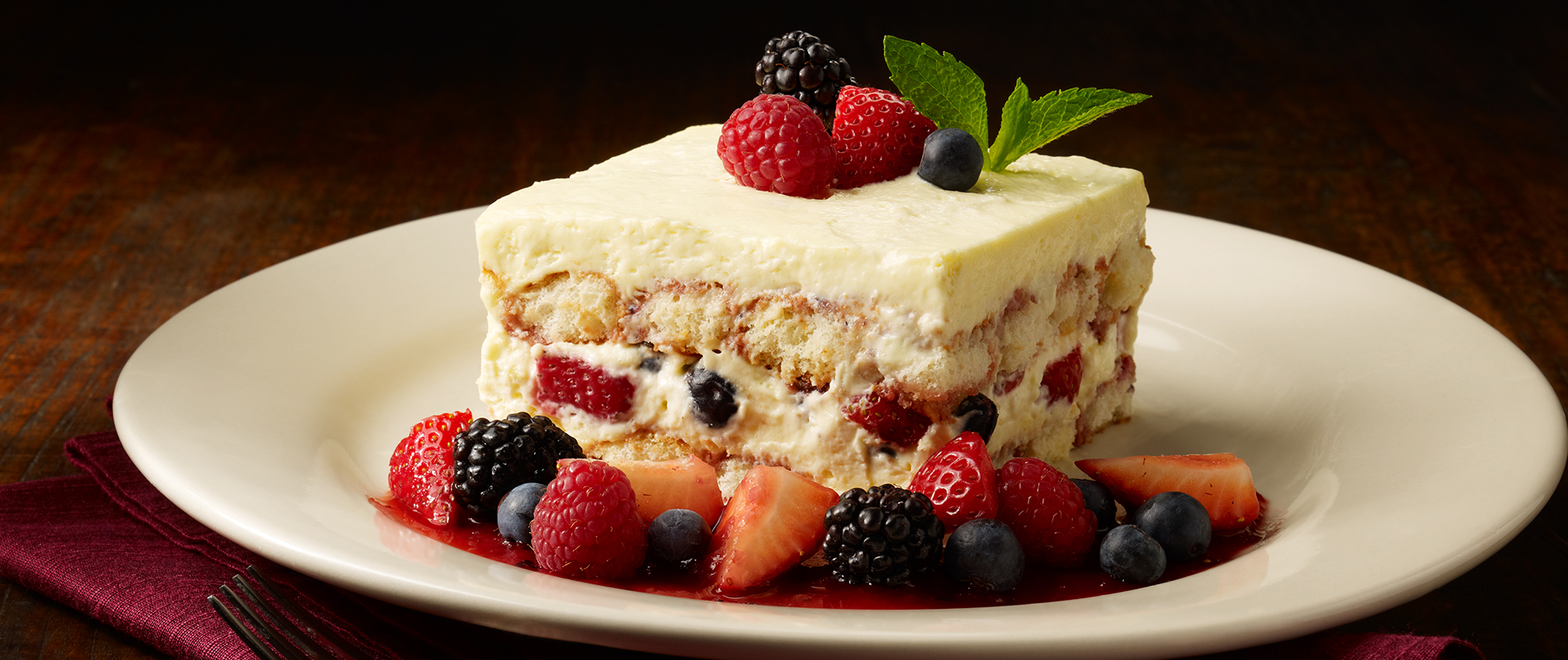- Fresh Berry Tiramisu – blueberries, blackberries, strawberries, fresh berry sauce