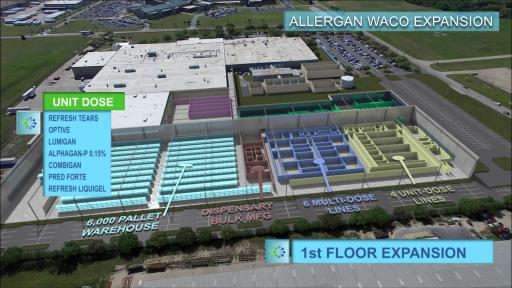 The construction, commissioning and validation of the facility expansion and production processes are expected to be completed by 2020. Allergan’s Waco facility is the Company’s flagship manufacturing facility for its leading eye care products, including Restasis®, Lumigan®, Combigan®, Refresh Plus®, Refresh Tears® and Latisse®.