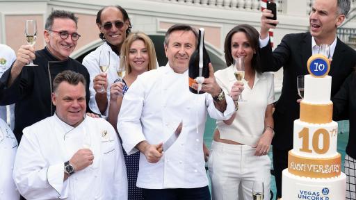 The 10th anniversary of Vegas Uncork’d by Bon Appétit began with a pop as some of the biggest names in the culinary world united at Doge’s Palace Piazza at The Venetian. Joined by more than 10 iconic chefs including Guy Savoy, François Payard and Emeril Lagasse, Chef Daniel Boulud traditionally sabered a magnum of Mionetto Prosecco to kick off the weekend of festivities at Caesars Palace, The Cromwell, The Venetian® and The Palazzo®.