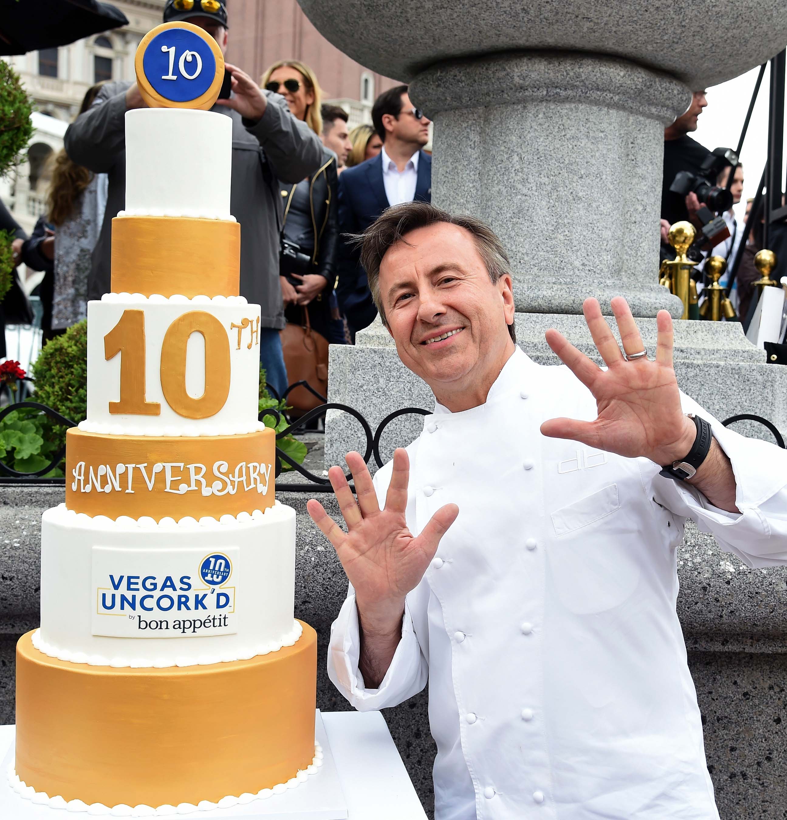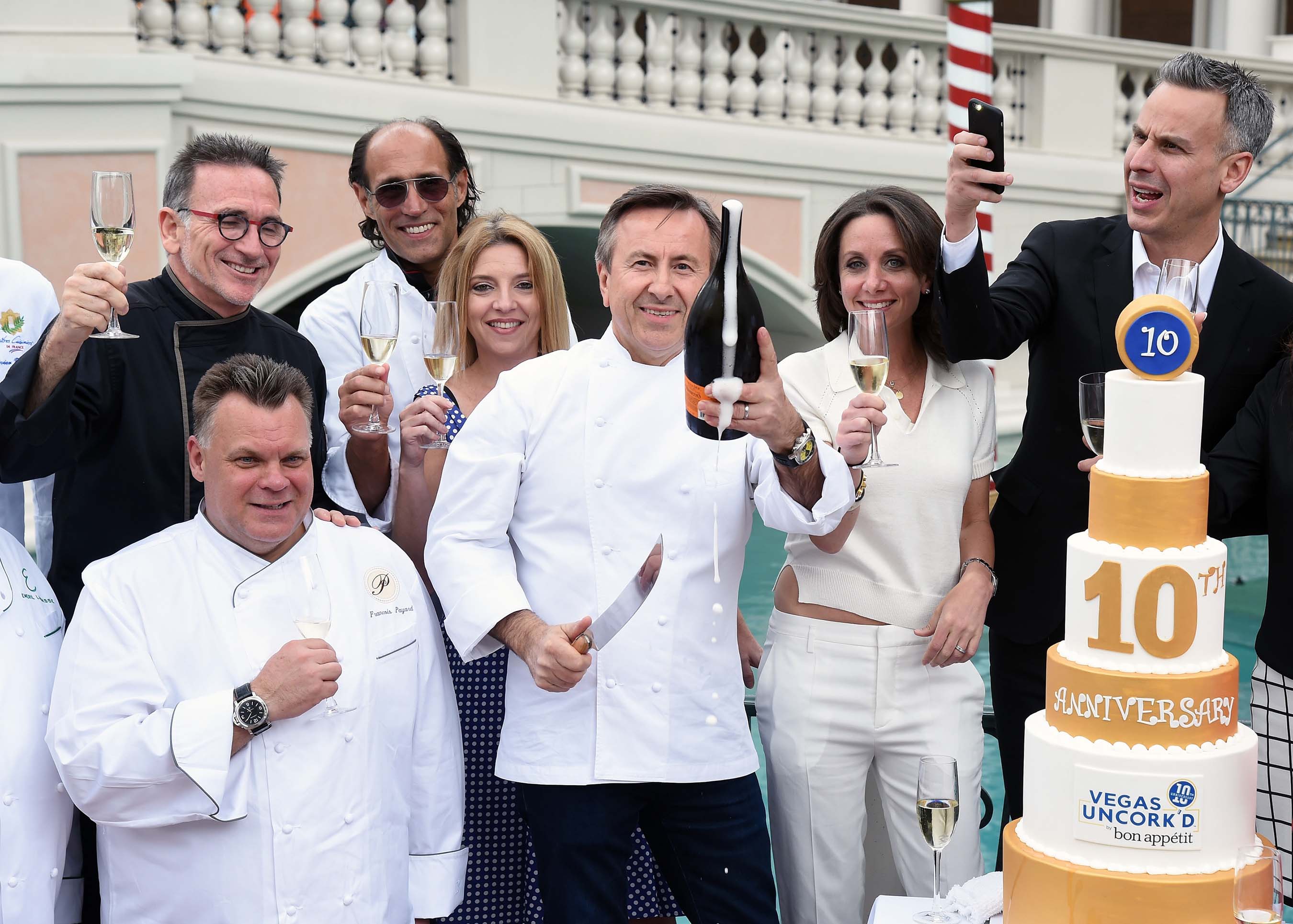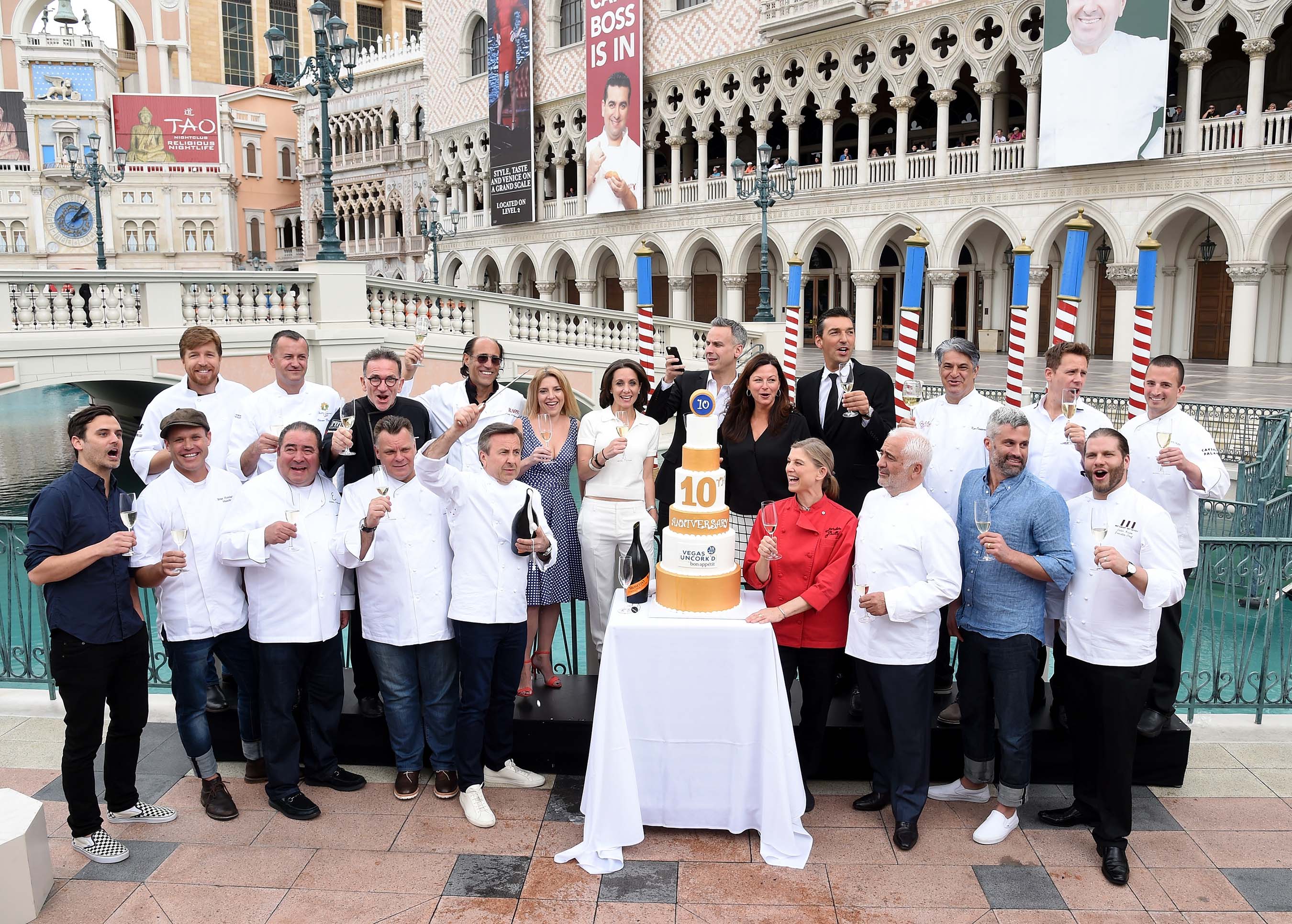 The 10th anniversary of Vegas Uncork’d by Bon Appétit began with a pop as some of the biggest names in the culinary world united at Doge’s Palace Piazza at The Venetian. Joined by more than 10 iconic chefs including Guy Savoy, François Payard and Emeril Lagasse, Chef Daniel Boulud traditionally sabered a magnum of Mionetto Prosecco to kick off the weekend of festivities at Caesars Palace, The Cromwell, The Venetian® and The Palazzo®.