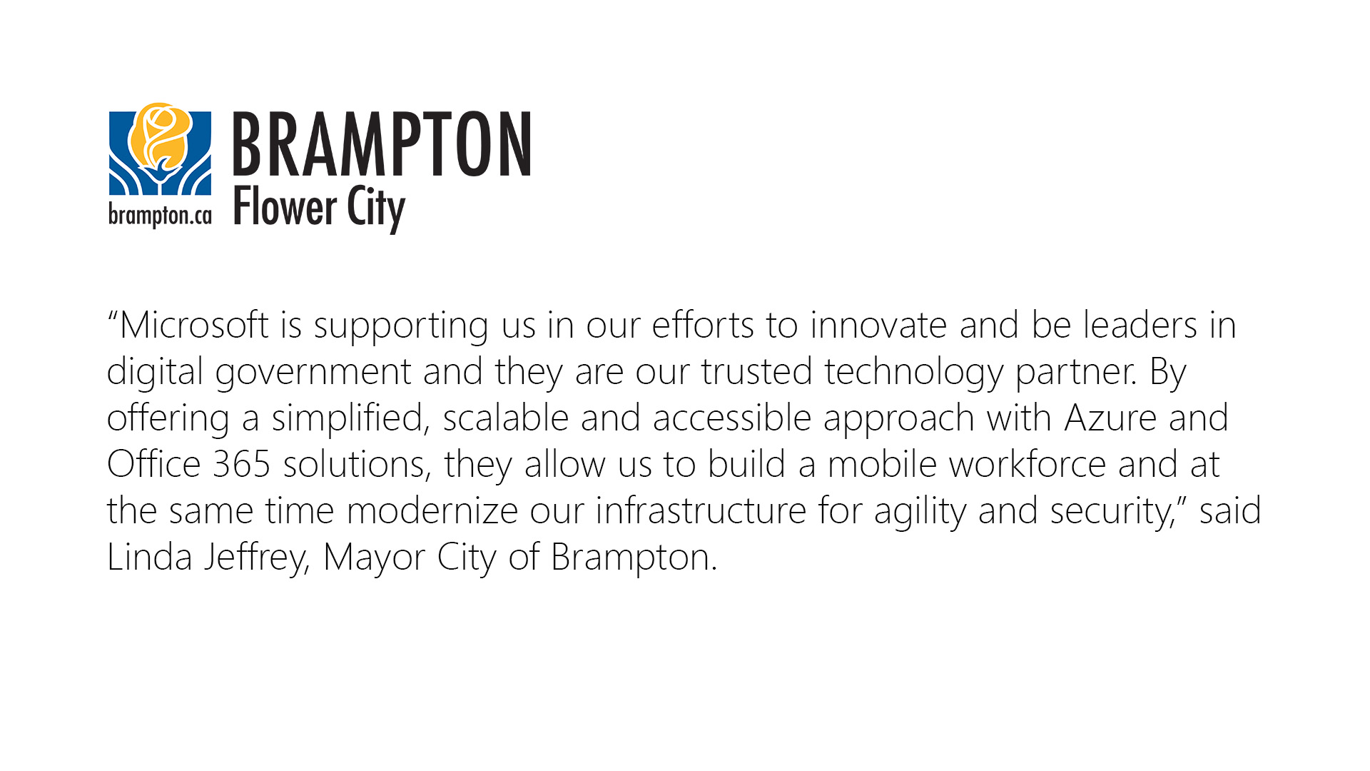 This focus on compliance together with local residency has resulted in many public sector customers moving to the Microsoft cloud in Canada including the Province of Nova Scotia, Province of New Brunswick, City of Regina and the City of Brampton. “Working with Microsoft is a tremendous opportunity for Nova Scotia. We encourage innovation and we are excited to be taking advantage of the newly opened Microsoft Canadian datacentre where we will begin moving more than 35,000 users to the Microsoft Canadian cloud over the coming years. Nova Scotia continues to be an innovative leader in Canada in many areas and this solution supports this visionary type of thinking,” Said Labi Kousoulis, Minister Internal Services, Province of Nova Scotia.