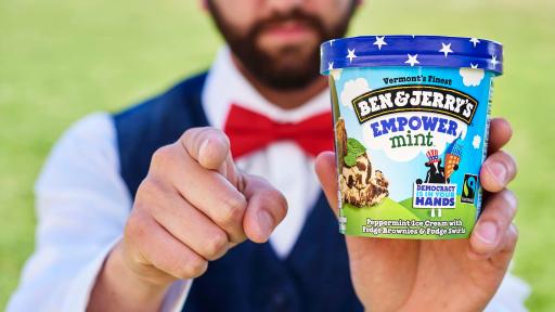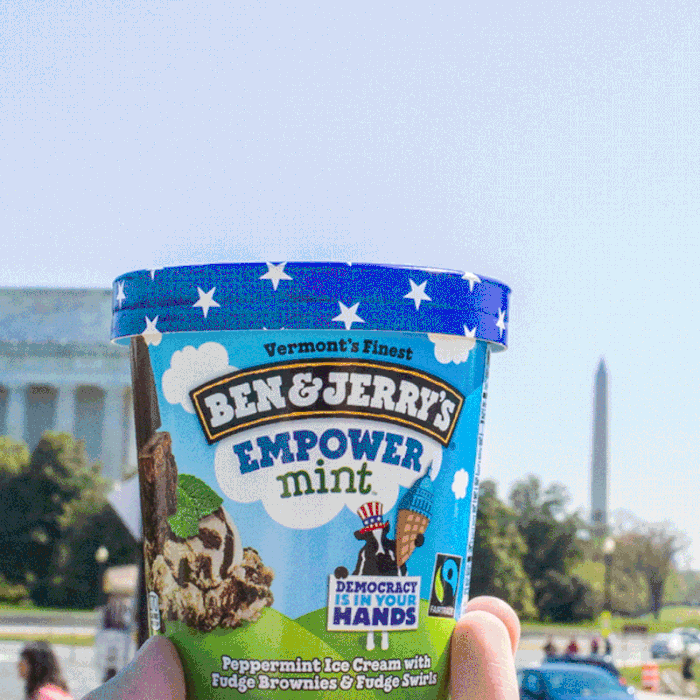 The Democracy Is In Your Hands campaign is a year long effort focused on getting fans and citizens alike to take a stand in support of democracy that truly represents the needs of all Americans. The campaign will engage hundreds of thousands of Americans around an evolving set of calls to action, including Voting Rights Act reauthorization and voter registration. The Empower Mint flavor brings the campaign to life in freezer cases around the country. The flavor is a creamy peppermint ice cream laden with fudge brownies and fudge swirls. It can be found at Ben & Jerry’s scoop shops nationwide as well as at retail locations in pints as a Limited Batch flavor. To learn more about Ben & Jerry’s Democracy Is In Your Hands Campaign, visit benjerry.com/democracy