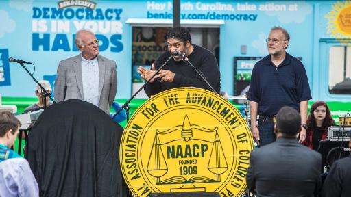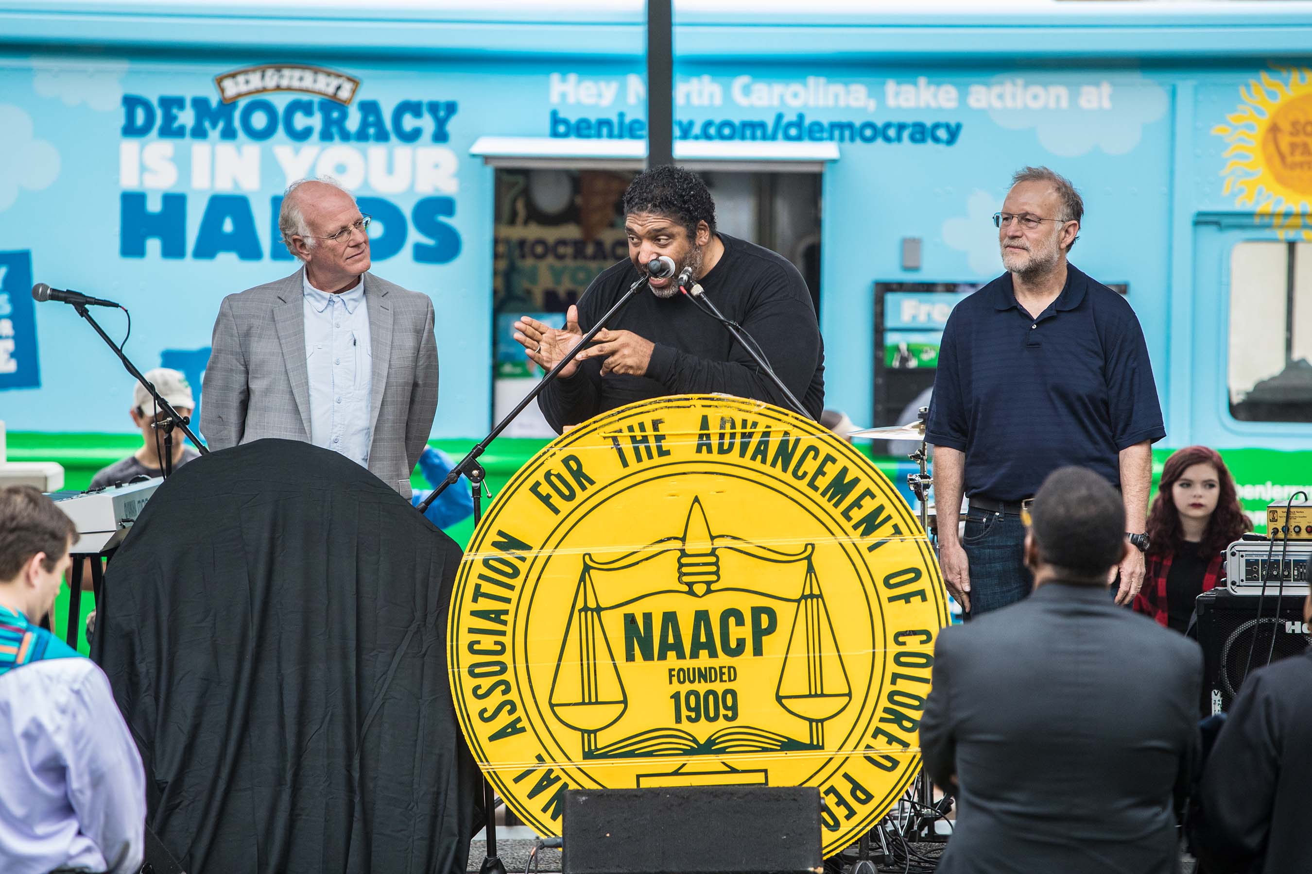 “We’re here today with Reverend Barber and many others to stand up for the right to participate in our democracy, a right that so many people fought and died for. Since our country’s inception, many brave Americans have battled to expand voting rights and voter access for African Americans, for women, and young people, but the recent passage of restrictive policies in North Carolina takes our country backwards,’ said Ben Cohen, Cofounder of the ice cream company.