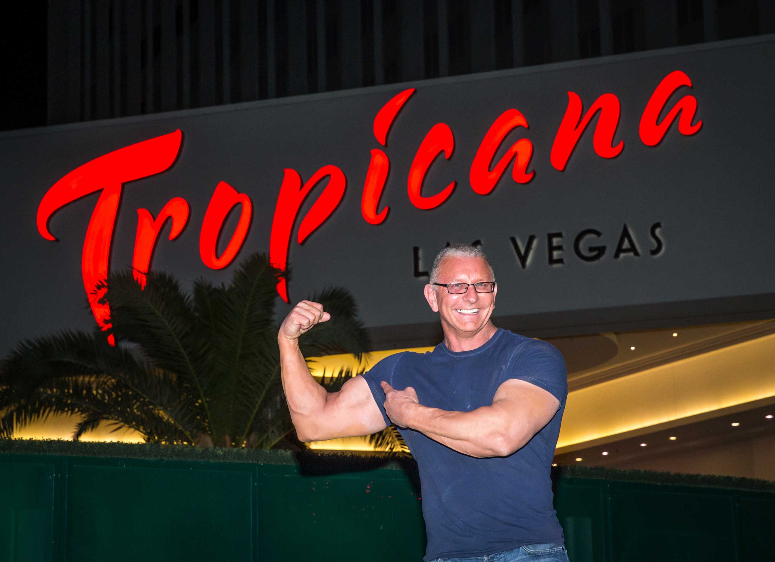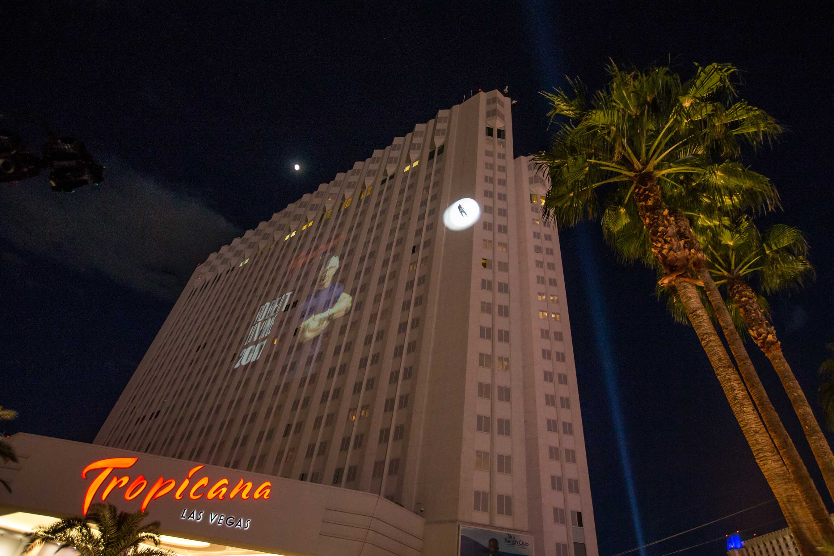 PR Newswire, LAS VEGAS, NV (May 17, 2016) -- Celebrity Chef Robert Irvine, host of Food Network’s Restaurant: Impossible, announced today that he is teaming up with Tropicana Las Vegas to open his first signature restaurant on the Las Vegas Strip. At the press conference, the exterior of the Tropicana Las Vegas came to life, where a high-energy video showed the crowd what they can expect to see from the newest chef in town. In true Robert Irvine fashion, the celebrity chef made his entrance by rappelling 22 stories (220 feet) down the exterior of the Tropicana hotel to the assembled press below.
