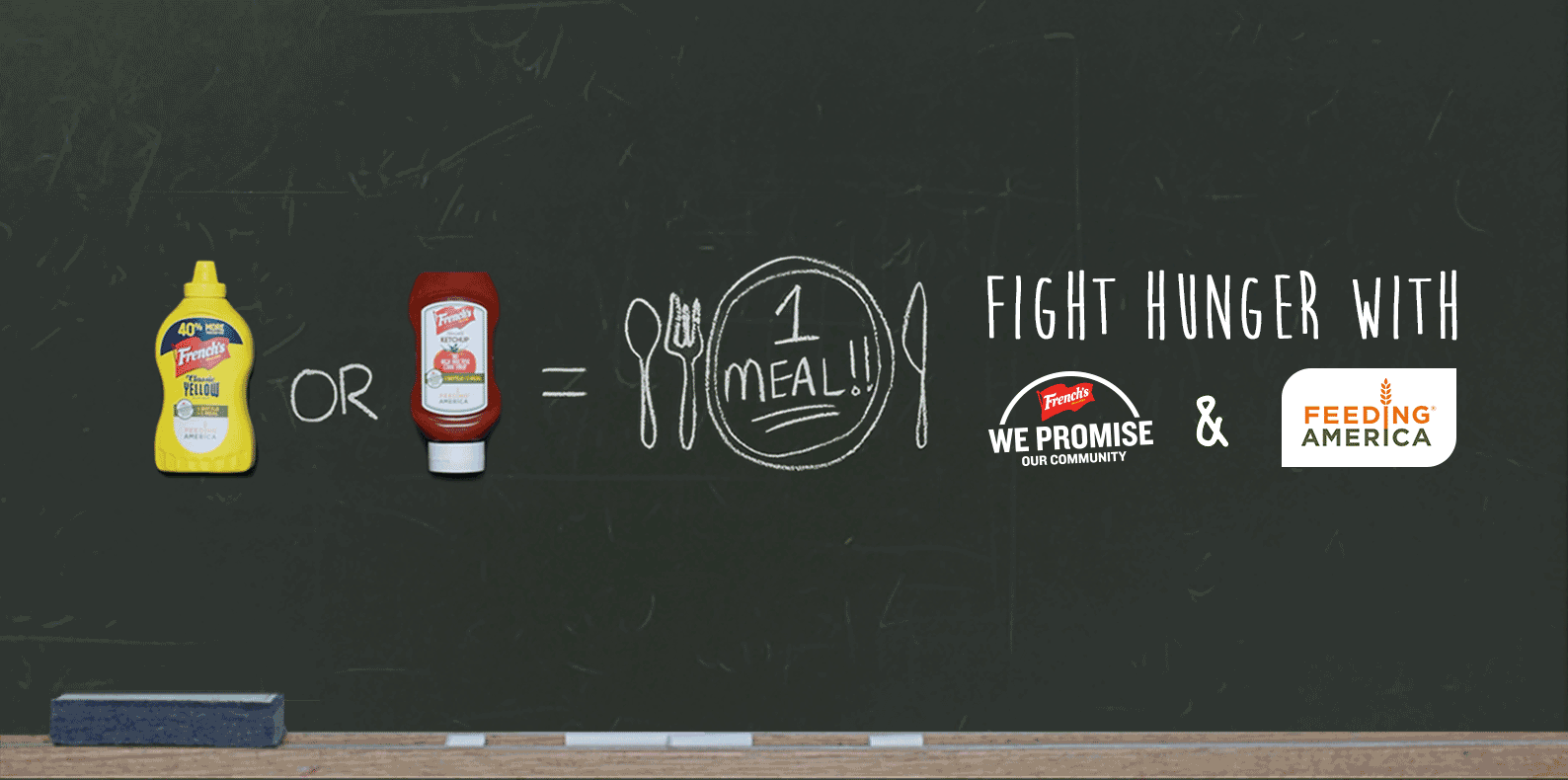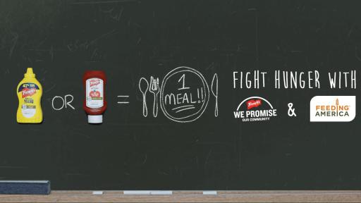 Partnering with companies like French’s, which has made supporting local communities a core part of its business, is crucial in combatting food insecurity. With the public’s support, French’s will raise the equivalent of 12 million meals to support the Feeding America network and the millions of people it serves throughout the country. For every specially-marked bottle of French’s Mustard and Ketchup purchased, shoppers will help to secure one meal* on behalf of a Feeding America member food bank in that community. Qualifying French’s products bear the Feeding America logo in stores nationwide.