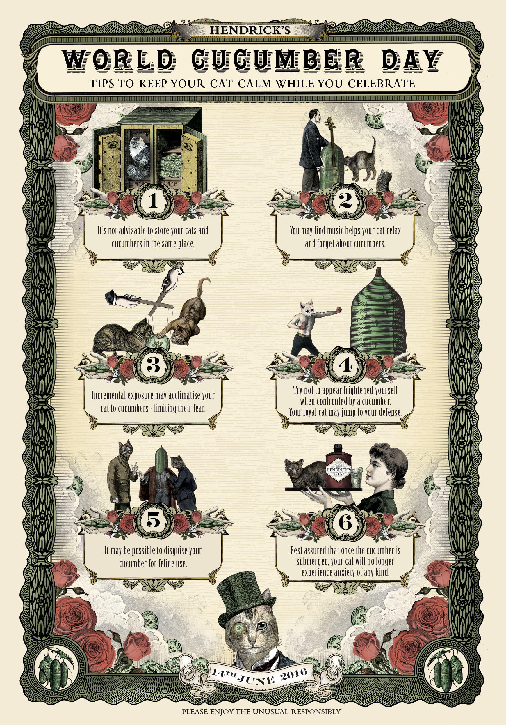 Over a third of cats across the globe display an irrational fear of cucumbers*. Hendrick’s® Gin has therefore stepped in to ensure harmony is restored ahead of World Cucumber Day on June 14th, 2016.