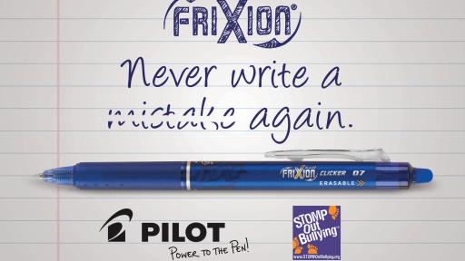 PILOT PEN PROMOTES ERASING BULLYING IN SCHOOLS WITH FRIXION CLICKER ERASABLE GEL INK PEN
