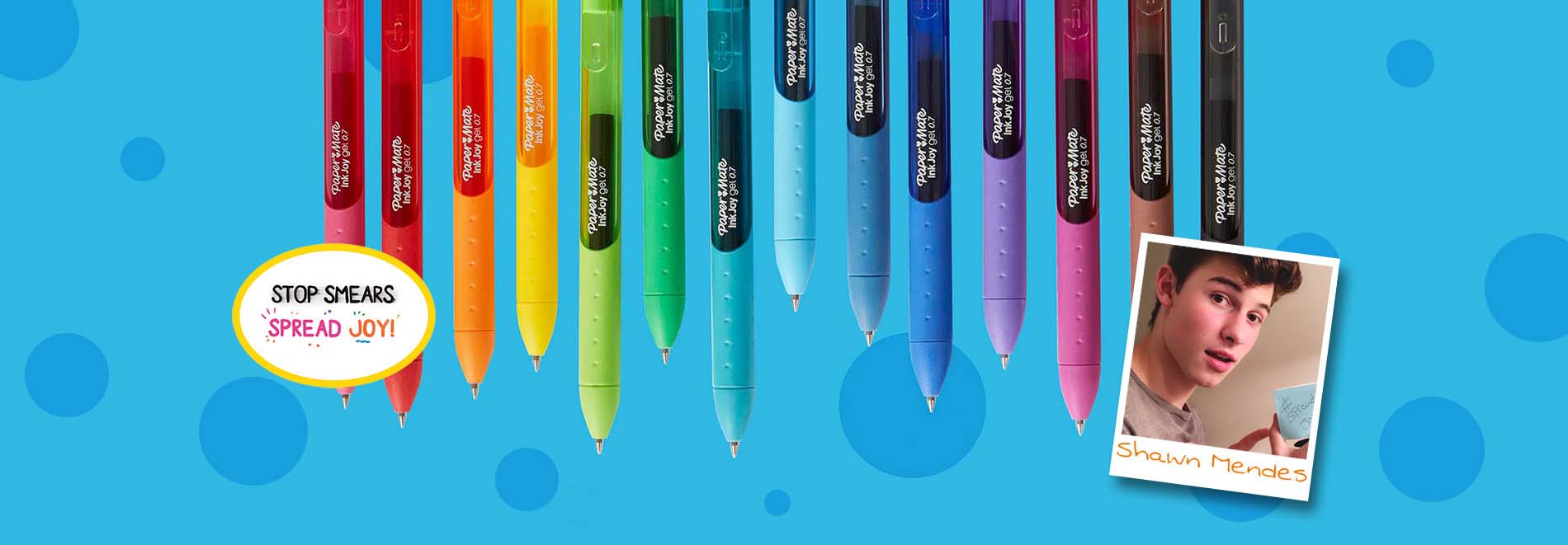 To celebrate the launch of Paper Mate® InkJoy® Gel Pens™, Paper Mate InkJoy is partnering with Island Records Multi-Platinum selling singer-songwriter and international sensation Shawn Mendes to “Spread Joy, Not Smears” during his upcoming summer World Tour. Now through December, fans will have the chance to join Shawn in spreading joy with new Paper Mate InkJoy Gel pens, available in 14 brilliant colours with vivid gel ink that dries 3X faster1 for reduced smearing.