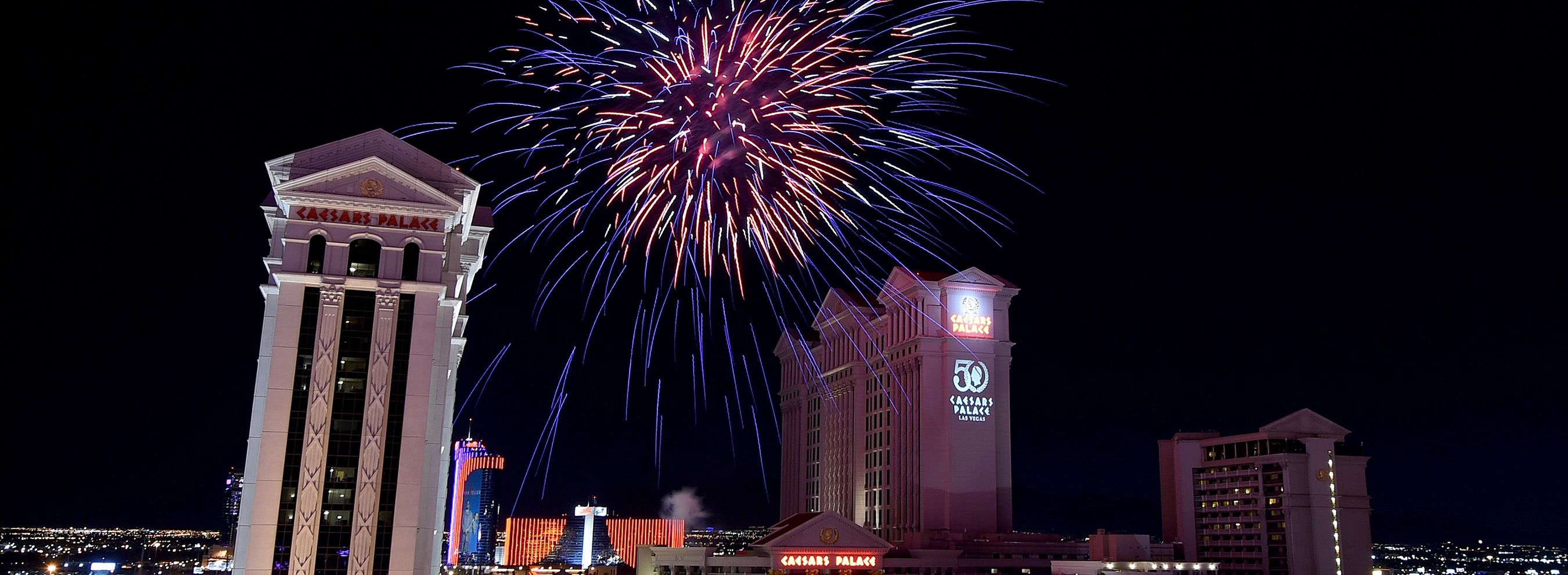 Tweet .@CaesarsPalace takes to the skies to celebrate #IndependenceDay Weekend with @RedBullAirForce & an extravagant fireworks display.