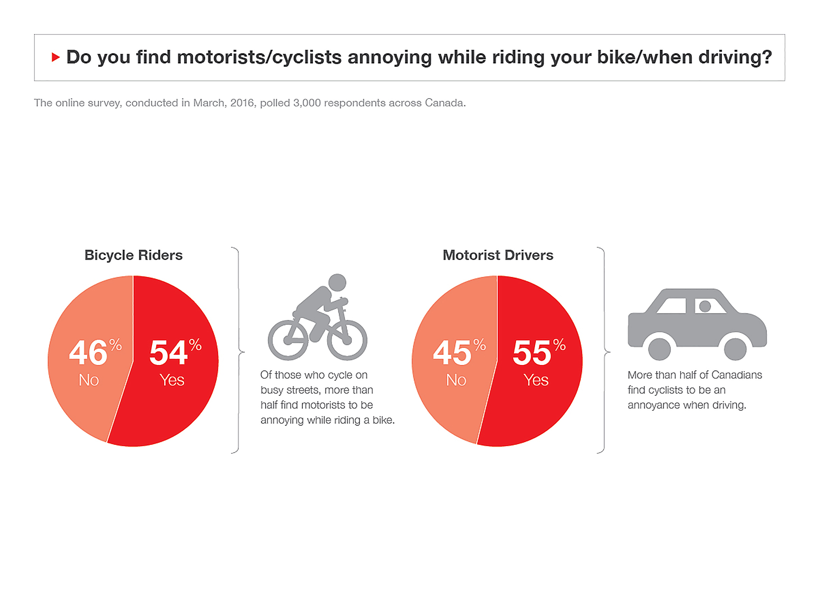 The online survey, conducted in March, 2016, polled 3,000 respondents of driving age across Canada.