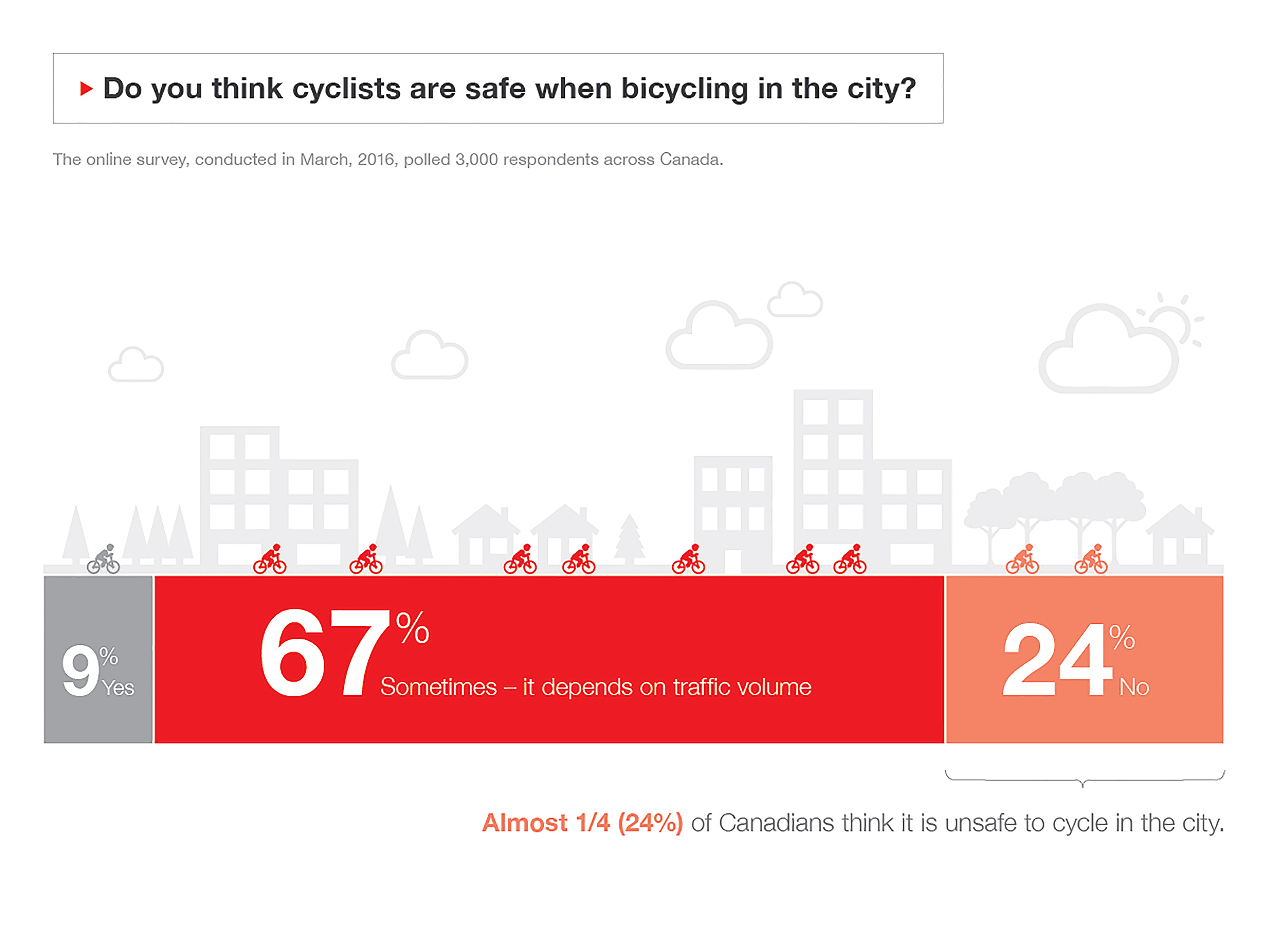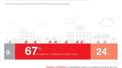 Whether it’s encountering distracted drivers and pedestrians, construction, road obstacles, or other cyclists who don’t follow the rules, safely sharing the streets is a daily adventure. So it’s not surprising that one out of four Canadians think that it’s unsafe to ride a bicycle on city streets.