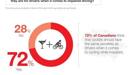 When it comes to cycling impaired, more than 72 per cent think cyclists should face the same penalties as drivers.