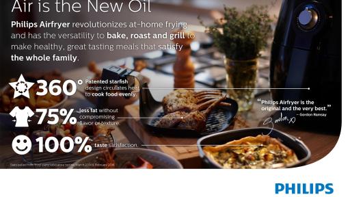 For more information about Philips Airfryer and resources for making healthy, homemade meals a reality every day, visit philips.com/airfryer. You can also download the Philips Airfryer mobile app for easy access to recipes, helpful tips and video content.